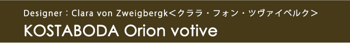 夜が少しずつ長くなっていく秋の宵には、キャンドルを灯して穏やかなひとときを過ごしてみませんか? ![]() ![]() 1974年にそのヨーラン・ヴァルフによってデザインされ、コスタ・ボダの歴史を刻む代表作キャンドルスタンドシリーズ「サンフラワー」が誕生しました。 ![]() 【Goran Warff(ヨーラン・ヴァルフ)】 ![]() ![]() ![]() BLUEは、スウェーデン、コスタにある自社工場で廃材として出た廃ガラスを再生し作られています。 ガラス職人が色ごとに選別したガラスは、入念にリサイクルされ、キャンドルホルダーとして新たな命を吹き込まれます。 色の選別と独自の製造工程により、それぞれの色が出来、同じシリーズでも、<Sunflower:サンフラワー>の形や色合いは1点ずつ異なります。 ![]() ![]() Orion(オリオン)キャンドルホルダーは、その名のとおり冬の夜空にひときわ目立つ、美しく輝く星座をモチーフにしてデザインされました。 クリスタルガラスの美しさを際立たせるプロポーションと、色使いが特徴です。