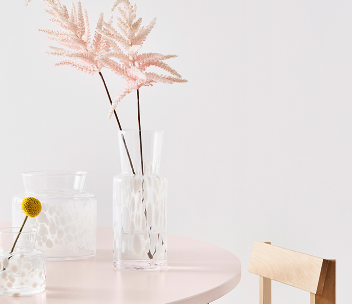 サスティナブルな要素と現代的なデザインを兼ね揃えたシリーズミニサイズのフラワーベース。 こちらは、クリアガラスのミニベース3種類をセットにした商品です。ころんと丸みを帯びたそれぞれ異なるフォルムが並ぶことで、やわらかく愛らしい表情を楽しめます。 同じカッパシリーズには、やさしい色合いを楽しめるカラータイプもご用意しています。 ![]() ![]() KOSTABODAの工房があるスウェーデン・スモーランド地方にある、牧草を栽培する牧草地(Meadow)の自然の移り変わりにインスピレーションを受けデザインされました。色付けされたガラスを粉砕し、それをクリアガラスに溶かしこみ成型されるため、 それぞれの花瓶はユニークな色柄・デザインが出来上がります。 シンプルで使いやすい、シリンダー型の直線的なラインのフラワーベースです。 ひとつあると重宝します。ドライフラワーを無造作に挿したり、背の高い花や枝状の植物を飾るのにおすすめ。 ![]() ![]() 氷のひびを思わせる繊細な表情のベース、コスタ ボダ「Crackle(クラックル)」シリーズ。蝋燭を入れてキャンドルホルダーとしてや、ちょっとした草花やフラワーベースに飾ったお花を卓上で楽しんで頂くこともできます。 ミニボウルとして小物を入れたり、クリスタルのオブジェとして飾るのも素敵です。 ![]() ![]() ラズベリーの粒をイメージしたデザインは、クリスタルなのに柔らかで優雅な印象を与えます。ラズベリーの粒をイメージし、クリスタルに表現されたデザインは、光を通すと柔らかで優雅な印象を与え、その輝きは影として映り込み、陰影の美しさを生み出します。 ![]() ![]()