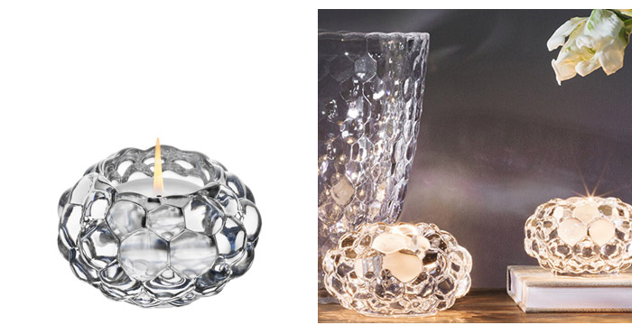 表面に細かな無数のカットを施すことでまるで宝石のような輝くCARATシリーズのキャンドルホルダー。デザイナーのLena Bergstrӧmは近年、宝石に魅了されいくつもの新しいデザインを作ってきました。