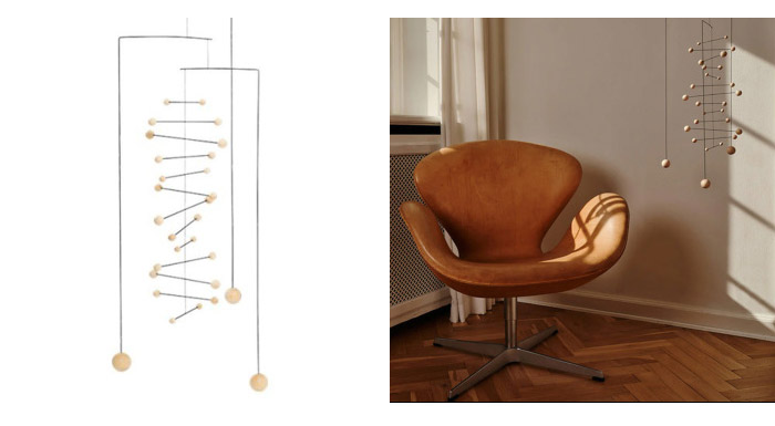 「カウンターポイント」モビールは、スタイリッシュなデザインのモビールです。ミュージシャン・デザイナーでもあるChristine Kit Flenstedのデザインで、対位法と呼ばれる、独立したメロディーの調和がモビールで表現され、いかにも音楽家らしい作品です。