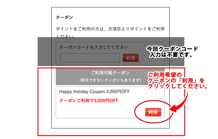 クーポンが使用できない場合は、「備考欄」に「3,000円OFFクーポン希望」または「1,000円OFFクーポン希望」の旨をご記載ください。