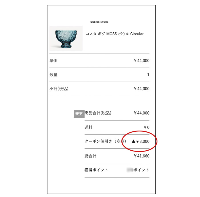 「注文確認」にてクーポンが適用されていることをご確認ください。