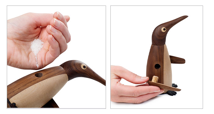 こちらの「ソルト ペンギン」は、ペンギンの腕からソルトを入れて首を回しながら使います。
