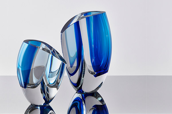スウェーデンのクリスタルブランド:コスタ ボダを代表する「光の魔術師」 Goran Warff〈ヨーラン・ヴァルフ〉彼の創り出した深いクリスタルの世界は、 ベースの青緑を一層引き立て、見る者の思い出や幻想や記憶を引き起こすような逸品です。